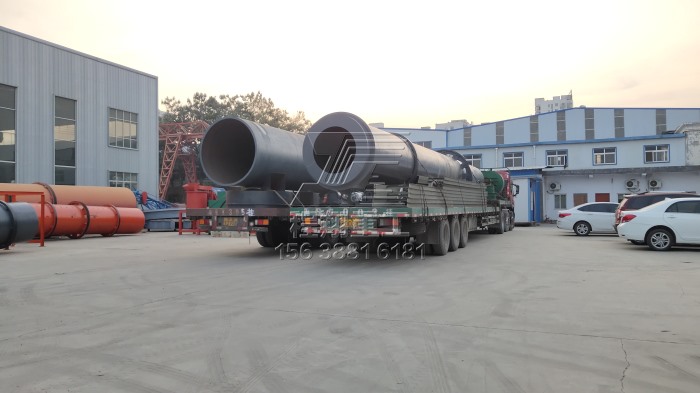 第一車與第二車裝載的是烘干、冷卻機(jī),滾筒烘干機(jī)的直徑為1.5米,長(zhǎng)度15米,回轉(zhuǎn)式冷卻機(jī)的型號(hào)小一號(hào),直徑為1.4米,長(zhǎng)度為14米。