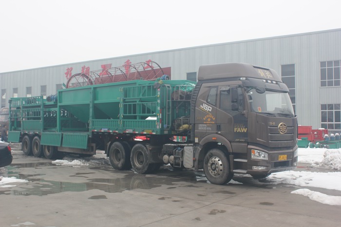 由于該豬糞秸稈有機肥料生產(chǎn)線產(chǎn)量較大,因此分為多車裝置運輸。主要的豬糞加工設備有:大型秸稈粉碎機、履帶式翻堆機、臥式攪拌機、新型三合一造粒機、不同型號的滾筒篩分機以及多個型號的烘干冷卻設備。滾筒烘干設備風頭以及風機安置熱風爐以及冷卻設備多個烘干冷卻設備履帶式翻堆機以及大型秸稈粉碎機二次烘干設備滾筒篩分機以及鏟車喂料倉本次豬糞秸稈有機肥料生產(chǎn)線工藝設計流程為:利用大型秸稈粉碎機將稻草秸稈等粉碎均勻,
