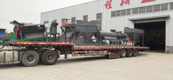 本次發(fā)貨的設(shè)備是程翔重工是為江西某客戶定制的,簡(jiǎn)單的年產(chǎn)1萬噸雞糞有機(jī)肥生產(chǎn)線,主要設(shè)備有:鏈?zhǔn)椒鬯闄C(jī)、滾筒篩分機(jī)、濕法攪齒造粒機(jī)、鏟車喂料倉以及自動(dòng)包裝秤。