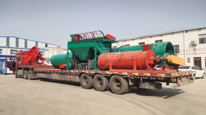 本次發(fā)貨的豬糞有機肥生產(chǎn)線主要設備有:鏟車喂料、臥式攪拌機、有機肥濕法造粒機、滾筒篩分機以及烘干設備。BB肥攪拌機作為拋圓設備使用