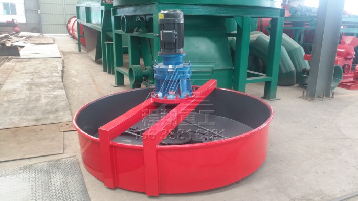 一臺盤式喂料機:主要起到均勻下料,不阻塞造粒機輥皮運轉為主