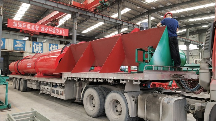 查看 > 20 2020/11由于該豬糞秸稈有機肥料生產(chǎn)線產(chǎn)量較大,因此分為多車裝置運輸。主要的豬糞加工設(shè)備有:大型秸稈粉碎機、履帶式翻堆機、臥式攪拌機、新型三合一造粒機、不同型號的滾筒篩分機以及多個型號的烘干冷卻設(shè)備。滾筒烘干設(shè)備風(fēng)頭以及風(fēng)機安置熱風(fēng)爐以及冷卻設(shè)備多個烘干冷卻設(shè)備履帶式翻堆機以及大型秸稈粉碎機二次烘干設(shè)備滾筒篩分機以及鏟車喂料倉本次豬糞秸稈有機肥料生產(chǎn)線工藝設(shè)計流程為:利用大型秸稈粉碎機將稻草秸稈等粉碎均勻,