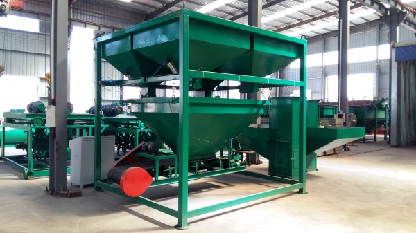 本次牛糞全套有機(jī)肥料設(shè)備生產(chǎn)工藝采用槽式好氧發(fā)酵,利用翻堆槽發(fā)酵既干凈又能最大化的利用有限的場地,增加糞便處理量。由于客戶對于顆粒有機(jī)質(zhì)含量以及NPK有特殊要求,因此我們?yōu)榭蛻魧iT定制了一臺(tái)三倉的靜態(tài)配料系統(tǒng)。