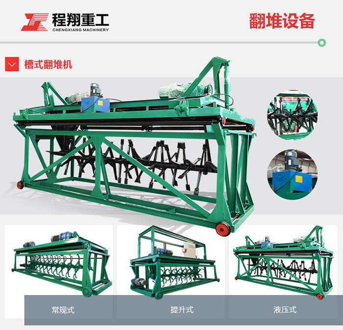 程翔重工生產(chǎn)的多種型號(hào)的槽式翻堆機(jī)