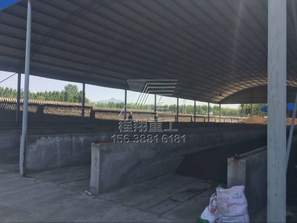 ④移動翻拋發(fā)酵加工法。該工藝是在溫室式發(fā)酵車間內(nèi),沿軌道連續(xù)翻耕動拌好菌劑的畜禽糞便,使其發(fā)酵、脫臭,牲畜禽糞便從發(fā)酵車間一端進入,出來時便為發(fā)酵好的有機肥,并直接進入干燥設備脫水,成為商品有機肥。該生產(chǎn)工藝充分利用光能、發(fā)酵熱,設備簡單,運轉成本低。其主要設備有翻拋機、溫室、干燥筒、翻斗車等。