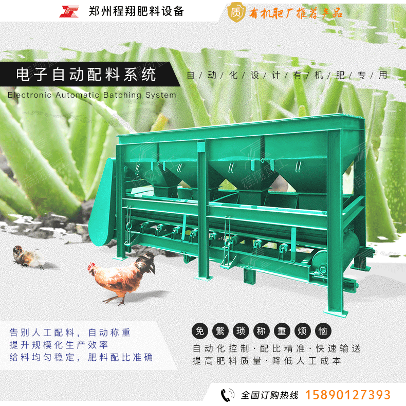 4、自動配料:根據(jù)有機肥或有機無機復(fù)混肥的養(yǎng)分配比,4-5個料倉,通過電腦控制每個料倉的下料比例,讓物料的養(yǎng)分比例嚴格按照國家標準,實現(xiàn)自動化配料。