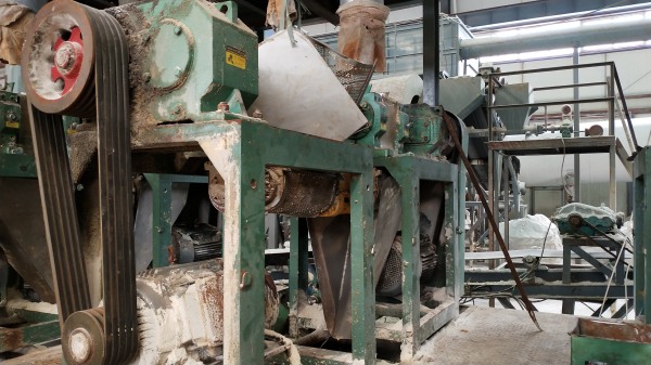 存在問題:例如復合肥對輥機擠壓機,機器保護外殼丟失,工作時不安全;沒有及時清理,內部器械之間留存大量的粉狀肥料,并且產生了一定的腐蝕。