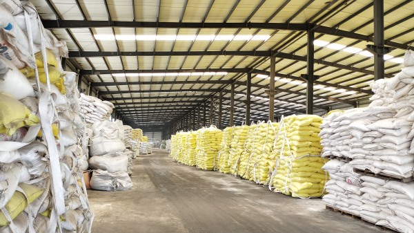 年產10萬噸的復合肥生產線成品庫堆放: