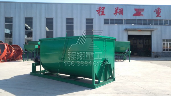 3、混合攪拌:將配好的原料攪拌均勻提高肥料顆粒整體的均勻肥效含量,采用臥式攪拌機(jī)或盤式攪拌機(jī)進(jìn)行混合攪拌;