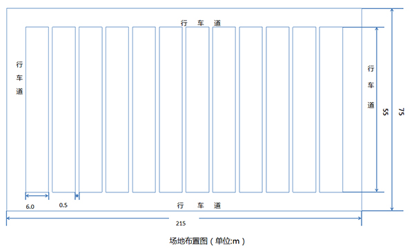 翻堆場地寬:  195+20=215m(場地兩側(cè)各留1 0米運轉(zhuǎn)空間)
